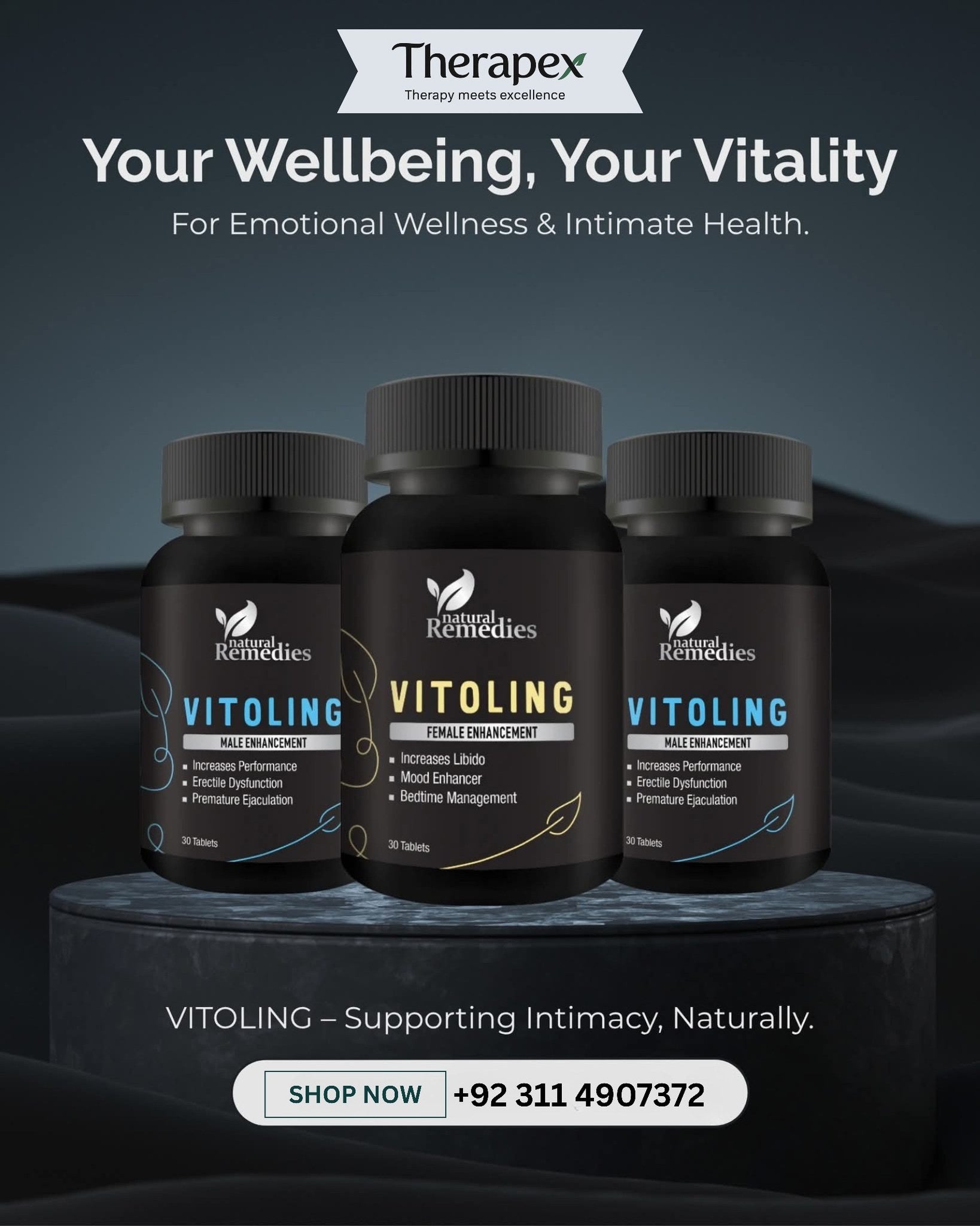 Vitoling prevents sexual disorders and improves sex drive. It enhances mood, lowers stress and stimulates sex hormones.